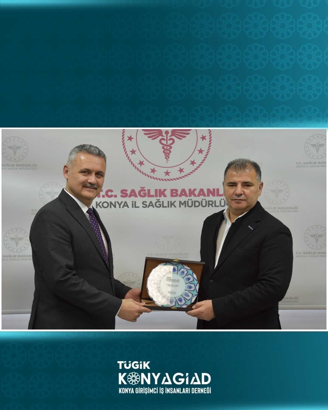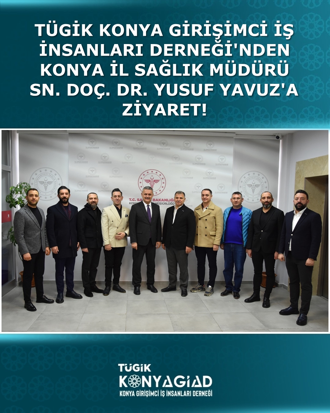 TÜGİK Konya Girişimci İş İnsanları Derneği (TÜGİKKONYAGİAD) Yönetim Kurulu Başkanı Sn. Gülvezir Korkmaz ve beraberindeki heyet, Konya İl Sağlık Müdürü Sn. Doç. Dr. Yusuf Yavuz’u makamında ziyaret etti.