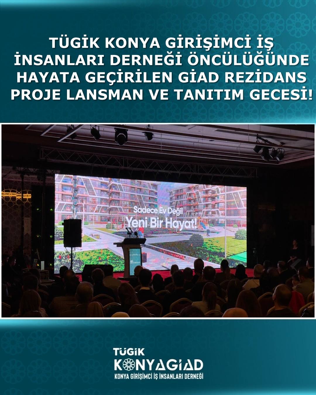 TÜGİK Konya Girişimci İş İnsanları Derneği (TÜGİKKONYAGİAD) öncülüğünde hayata geçirilecek olan "GİAD REZİDANS" projesinin lansman ve tanıtım kokteyli, üyeler ve misafirlerin yoğun katılım ile Bayır Diamond Hotel & Convention Center'da gerçekleştirildi.